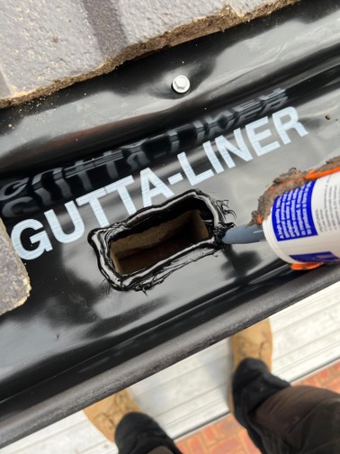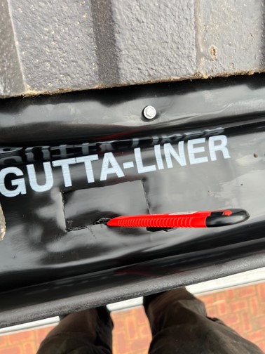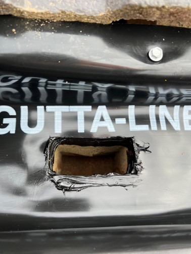 Install GUTTA-LINER over downpipe and smooth into position. Cut out the downpipe flush with the edge using a cutting blade.